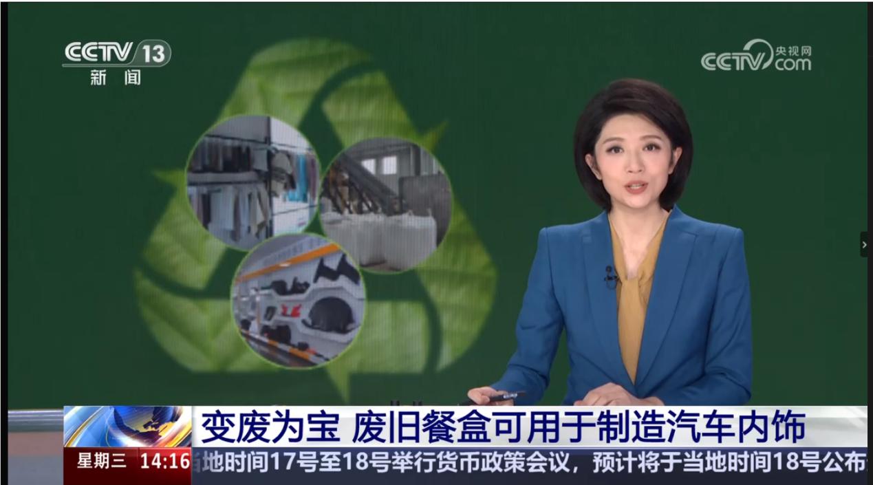 9月18日下午兩點(diǎn),CCTV13新聞頻道播放了長達(dá)10分鐘的再生塑料相關(guān)新聞,報道了我國在廢舊塑料回收、廢舊餐盒做成速干衣、廢舊餐盒做成汽車配件方面的高值化利用。