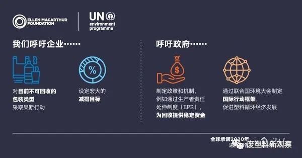 基于上述發現,艾倫·麥克阿瑟基金會和聯合國環境署發出破除塑料污染的四大呼吁: